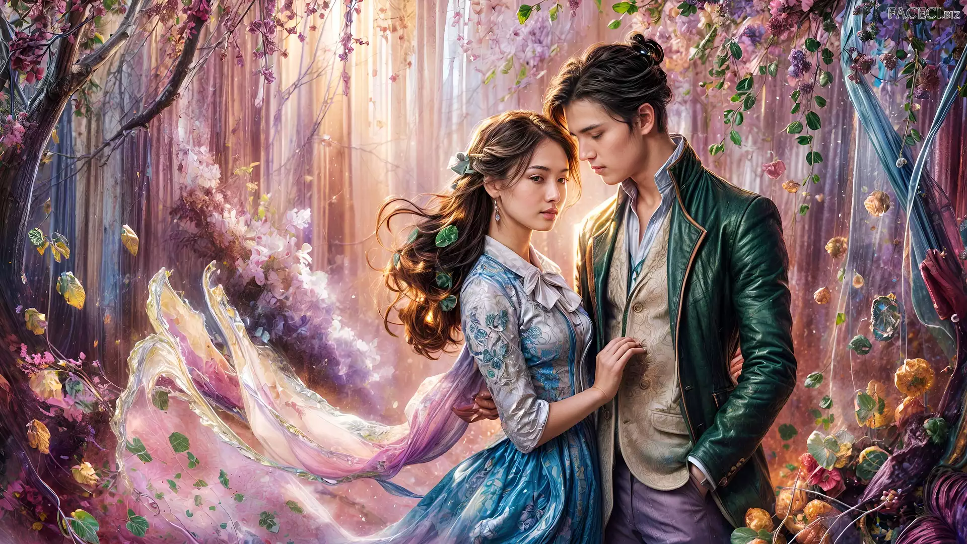 Kobieta, Mężczyzna, Drzewa, Grafika - faceci.biz